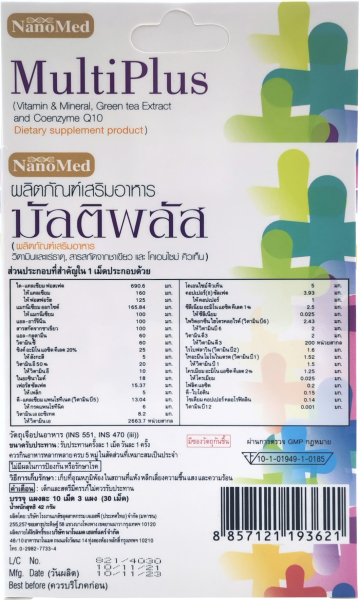 นาโนเมด มัลติพลัส รวมวิตามินและแร่ธาตุที่ให้ค่าใกล้เคียงกับที่ร่างกายต้องการต่อวัน |