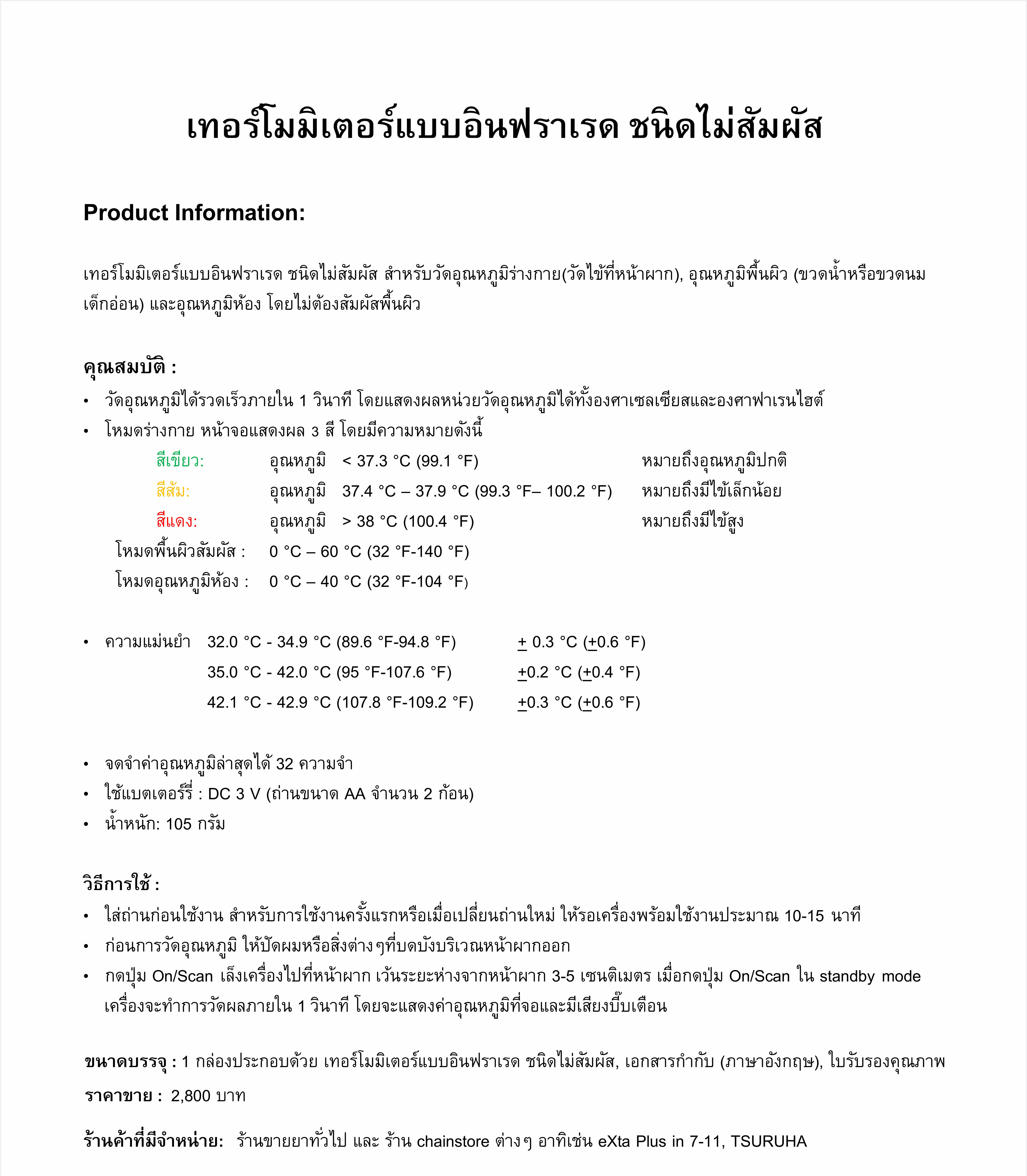 เทอร์โมมิเตอร์แบบอินฟราเรด ชนิดไม่สัมผัส